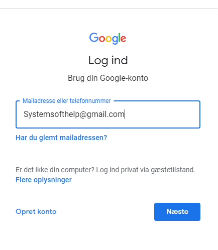 Indtast Systemsofthelp@gmail.com du vil få tilsendt en kode af os via mail.